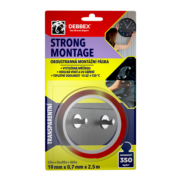 Dwustronna taśma montażowa STRONG MONTAGE z wyjątkowo mocną warstwą kleju akrylowego. Doskonale przylega do szerokiej gamy podłoży, zapewniając bardzo silne mocowanie. Charakteryzuje się natychmiastową pełną przyczepnością, co przyspiesza montaż i uruchomienie klejonego elementu.
