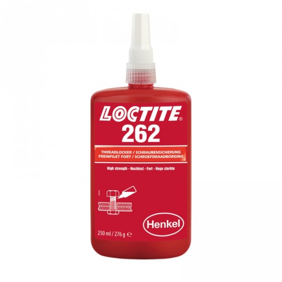 Środek do zabezpieczania gwintów Loctite 262 jest przeznaczony do trwałego mocowania i uszczelniania połączeń gwintowych, zapewniając ich ochronę przed samoistnym odkręcaniem. Utwardza się w szczelinie między gwintami, bez dostępu powietrza, zapewniając średnią siłę mocowania. Po pełnym utwardzeniu gwarantuje stabilne i niezawodne mocowanie śrub w gwincie. Produkt jest odporny na wibracje, wstrząsy oraz inne mechaniczne obciążenia, które mogą osłabiać połączenia gwintowe. Zastosowania obejmują m.in. zabezpieczanie i uszczelnianie śrub w elementach złączy. Charakteryzuje się tiksotropowym charakterem, dzięki czemu nie spływa z powierzchni aplikacji.