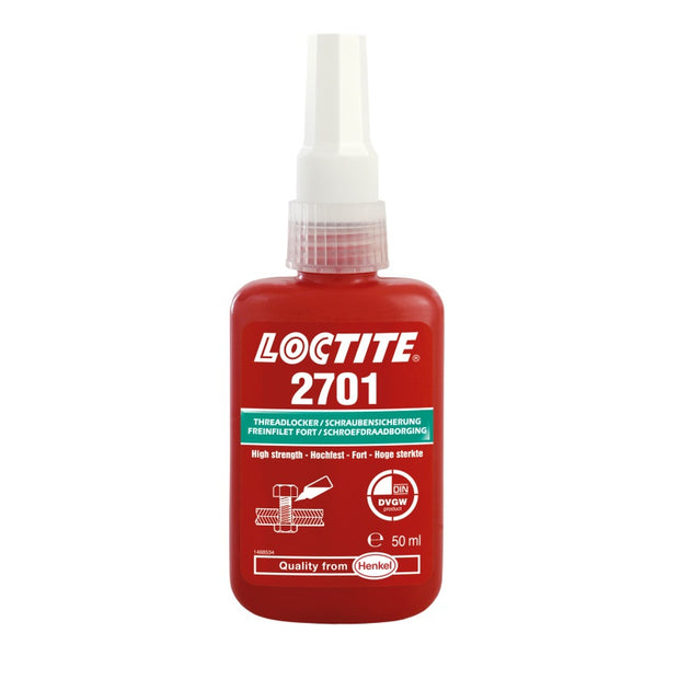 Wysoko wytrzymały środek zabezpieczający gwinty Loctite 2701 znajduje zastosowanie wszędzie tam, gdzie wymagana jest bardzo mocna stabilizacja połączeń. Loctite 2701 utwardza się bez dostępu powietrza w szczelinie między dwoma powierzchniami metalowymi, po czym jest wyjątkowo odporny na czynniki mechaniczne i chemiczne, zapobiegając pękaniu połączenia oraz wypadaniu lub poluzowaniu montowanych elementów. Należy jednak pamiętać, że Loctite 2701 nie jest przeznaczony do dalszego rozbierania, np. w celach konserwacyjnych. Po utwardzeniu demontaż będzie bardzo trudny. Idealnie sprawdzi się w aplikacjach, gdzie połączenie ma być trwałe, np. przy trwałym dokręcaniu sworzni bloków silnika, różnych obudowach na silniki elektryczne i podobnych zastosowaniach.