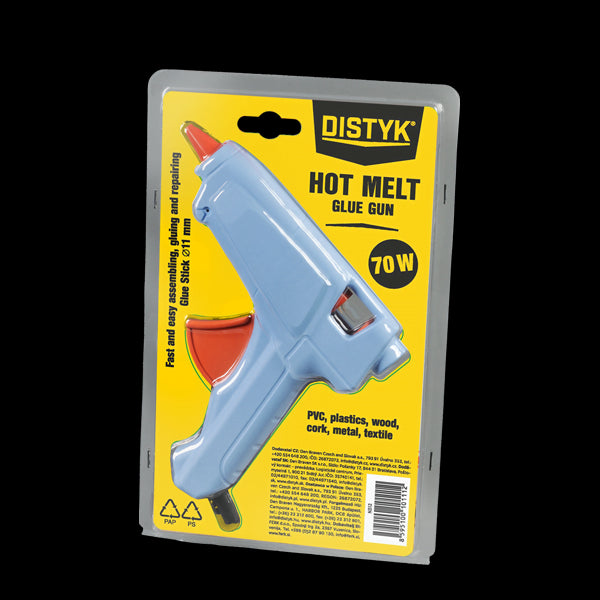 Pistolet na klej termotopliwy jest przeznaczony do łączenia materiałów za pomocą stopionego polietylenu (kule klejowe) w wysokiej temperaturze oraz do napraw różnych materiałów. (PVC, tworzywa sztuczne, drewno, korek, metale, szkło, tkaniny itp.).